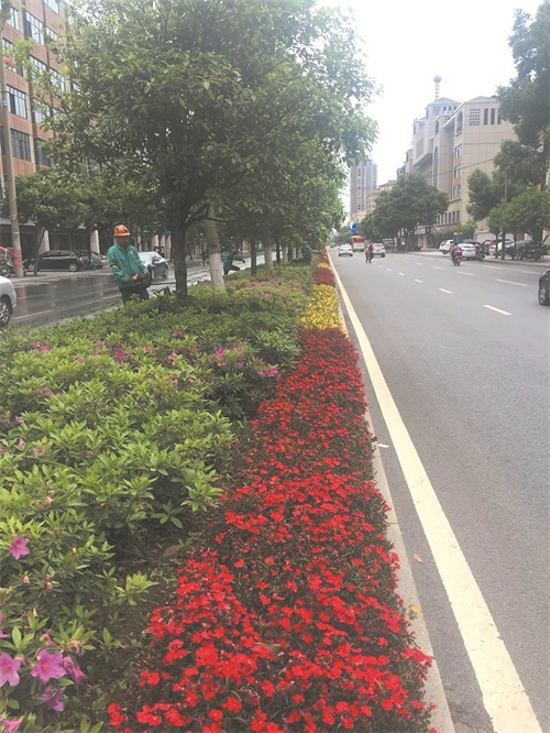 如今,走在冷水滩城区街头,绿树浓荫翠满城,鲜花姹紫嫣红遍地开,中心城区一片生机盎然,园林之美正在尽情绽放。